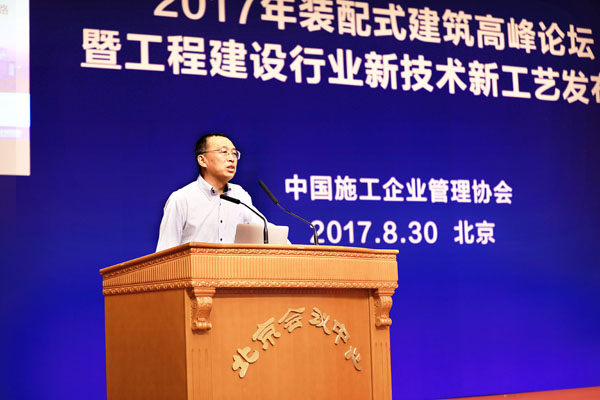 8月30日至31日,中国施工企业管理协会在北京市召开了“2017年装配式建筑高峰论坛暨工程建设行业新技术新工艺发布会”。中国施工企业管理协会会长曹玉书,副会长、科委主任李清旭,副会长、科委副主任栾德成、韩一宝,协会秘书长尚润涛,科委副主任刘辉、毛志兵、尤京、宗敦峰、刘景凤,协会副秘书长孙晓波、栾叶君等领导出席大会。会议由科委副主任刘辉同志主持。各行业、地方协会领导及工程建设企业代表1000余人参加大会。
