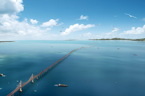 港珠澳大桥是我国继三峡工程、青藏铁路、南水北调、西气东输、京沪高铁之后又一重大基础设施项目,东连香港、西接珠海、澳门,是集桥、岛、隧为一体的超大型跨海通道。大桥的设计寿命为120年,预计于2016年完工。